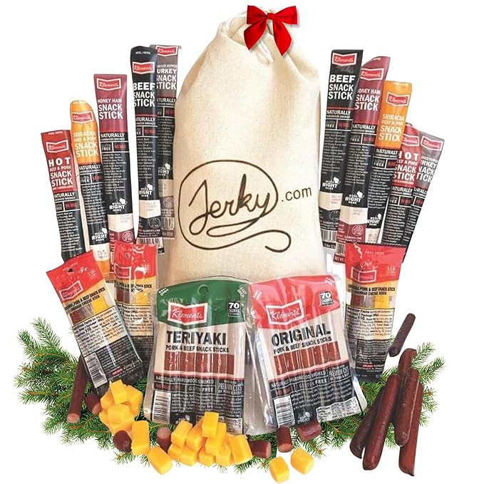 A Jerky Gift Bag for Men is a fun and satisfying Christmas gift for friends who love snacks. This 26-piece meat stick variety pack includes beef, pork, turkey, ham, and cheese sticks, offering a variety of flavor options in one festive gift bag.